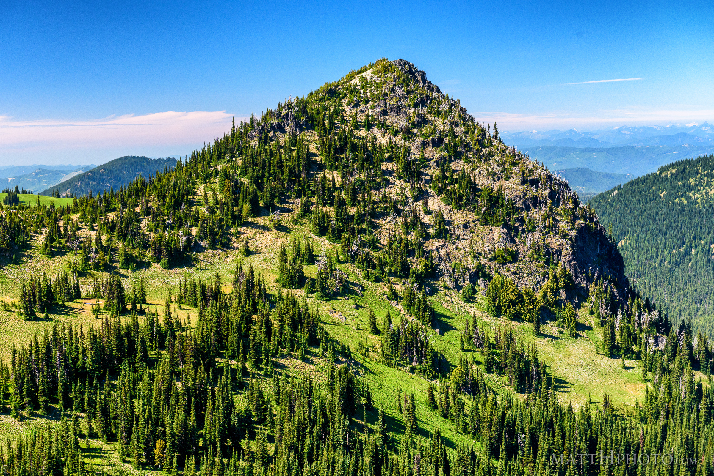 McNeeley Peak (6786 feet) and Huckleberry Basin, seen from Sourdough Ridge Trail, west of Sunrise Visitor Center.