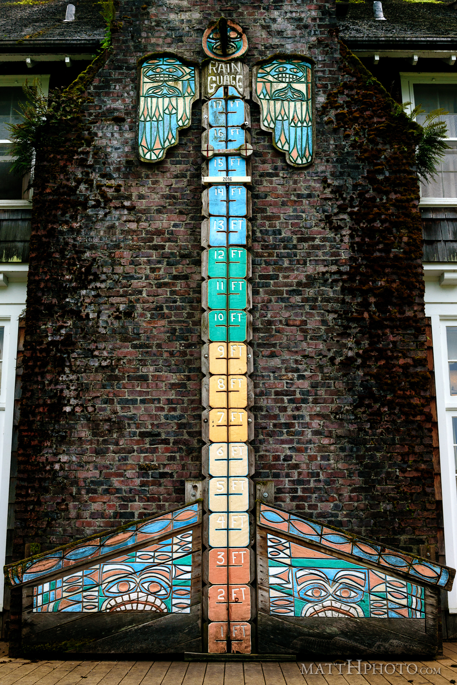 Rain guage at Lake Quinault Lodge - marked in feet, not inches