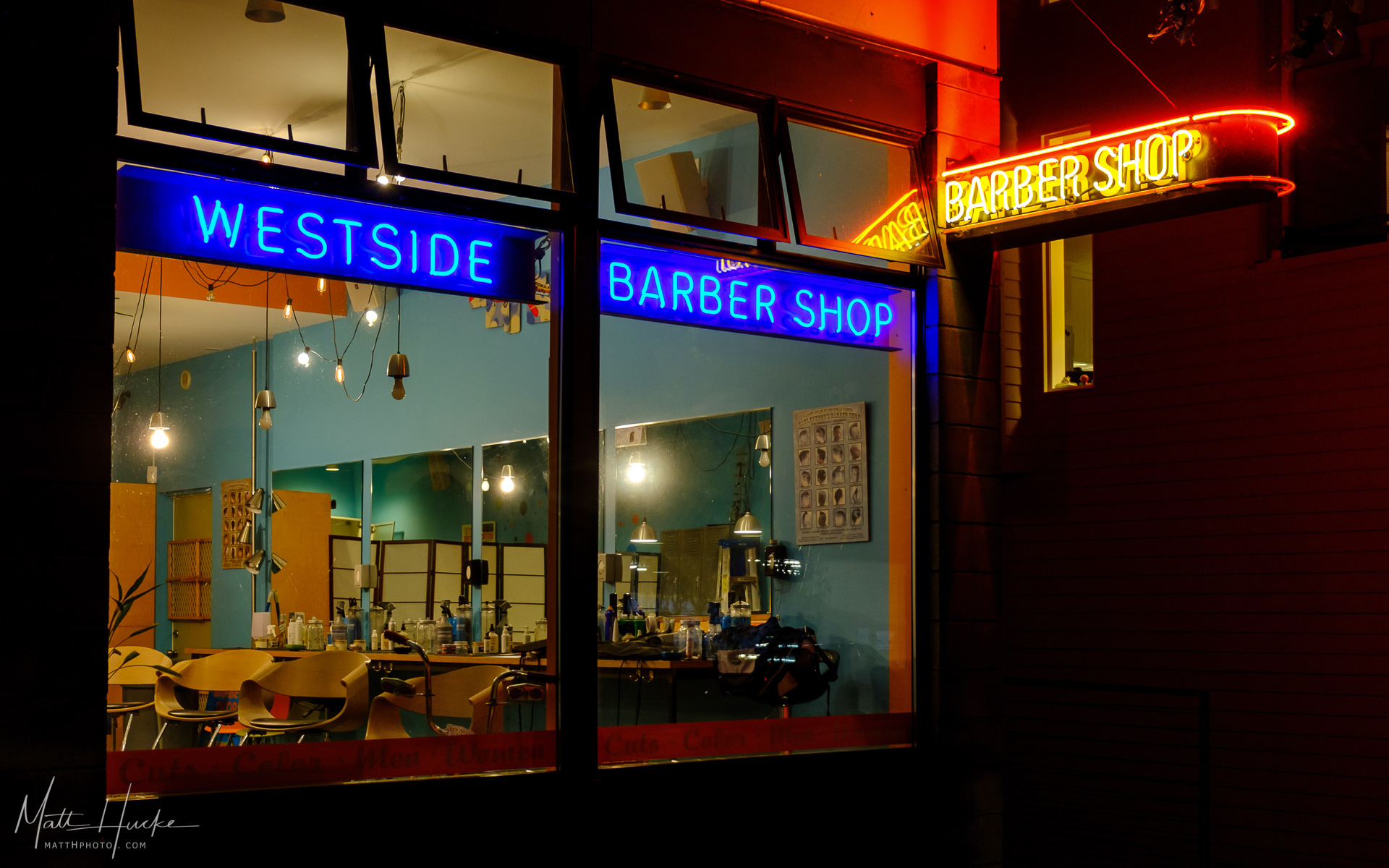 - barber, barbershop, neon sign, night, seattle, street, urban landscape, washington state, west seattle