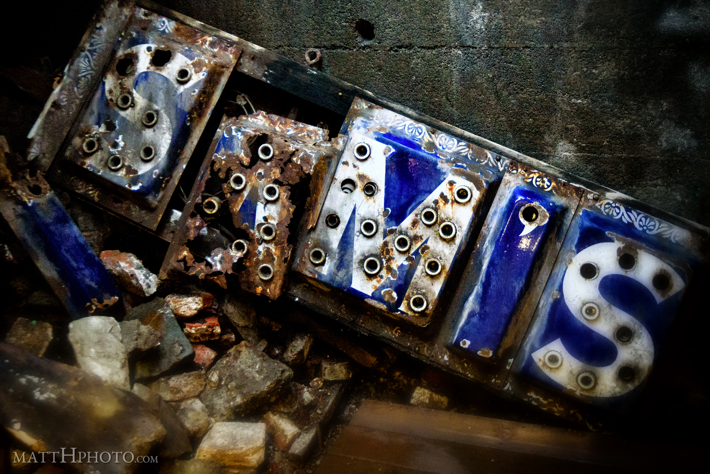 Illuminated sign discarded in Seattle Underground, 1st and Yesler Way, the original "Skid Row".