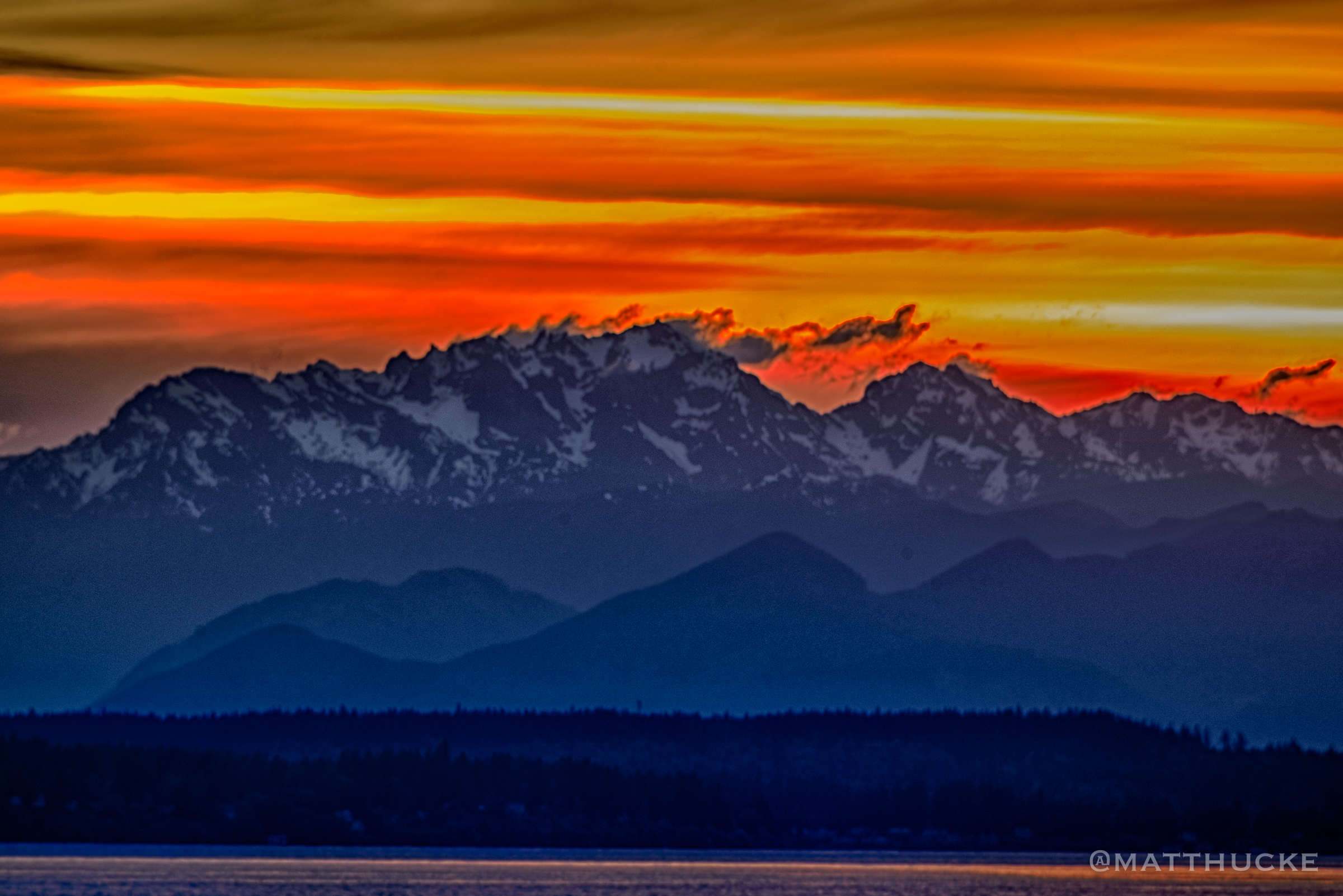 - hdr, mount constance, myrtle edwards park, olympic mountains, puget sound, seattle, seattle parks, sunset