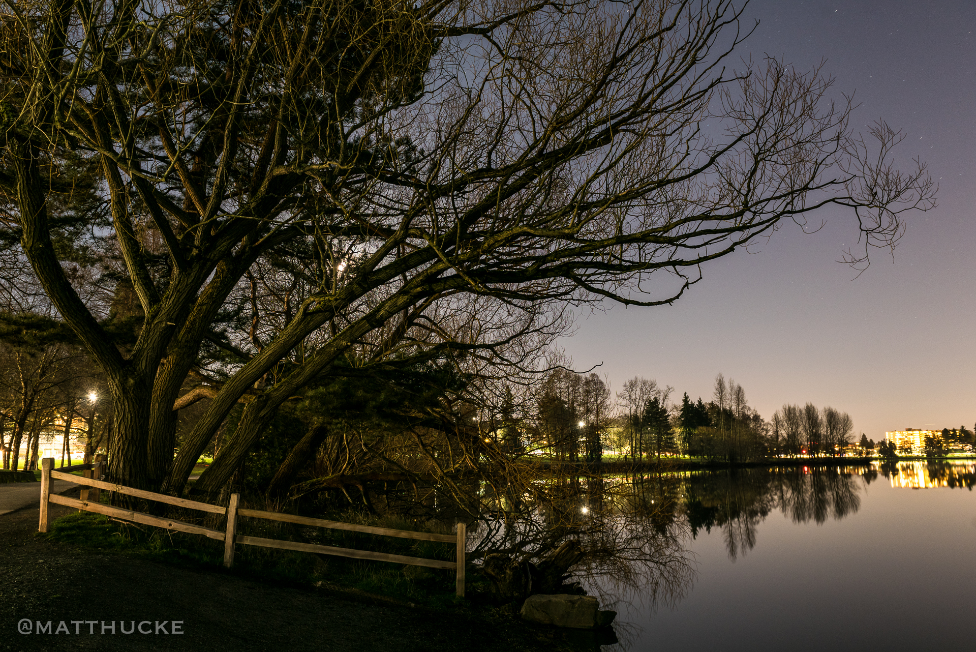 - green lake, lake, night, seattle, tree