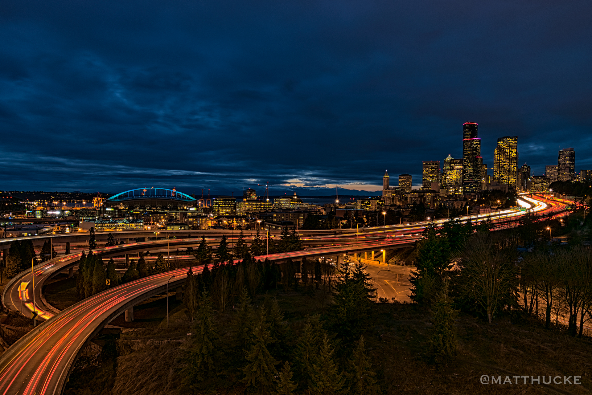 - Blue, cityscape, highway, joserizalbridge, lighttrail, night, seattle