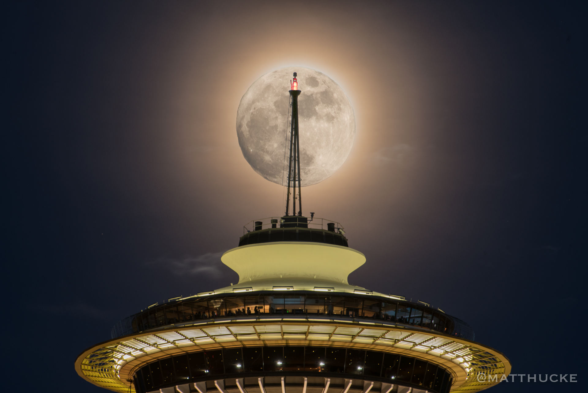 - composite, moon, seattle, spaceneedle