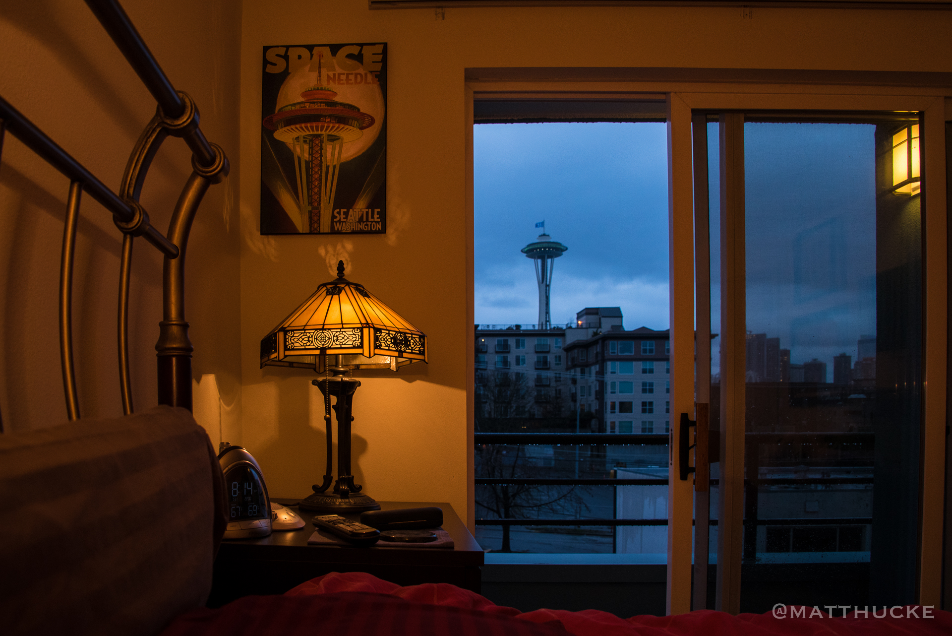I wanted to emphasise the different colours of light, so I left WB in daylight mode, put a tungsten gel over my flash, and fired the flash upwards and back over my shoulder.