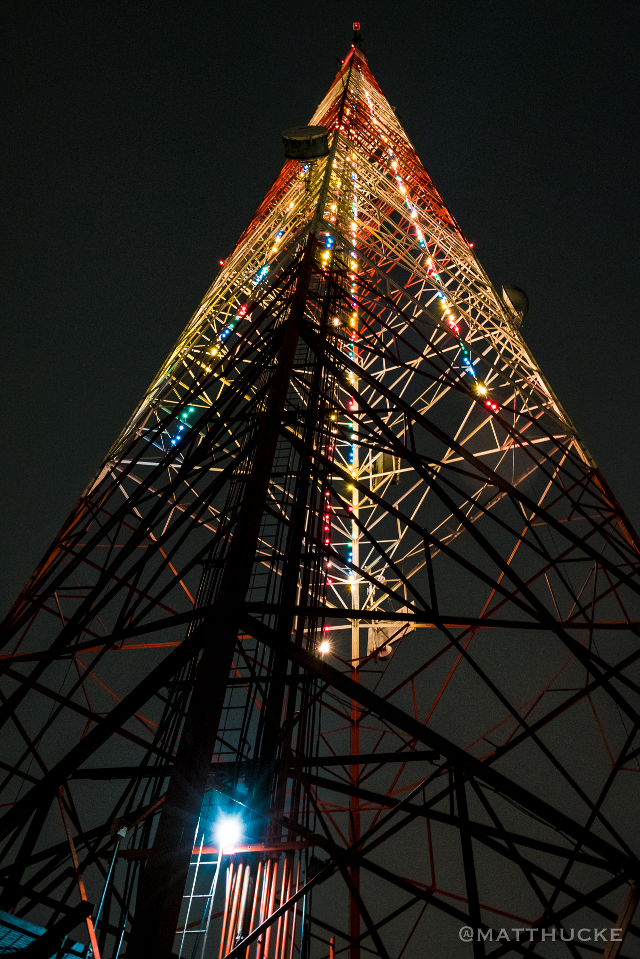 KING5 Seattle broadcast tower with Christmas lights