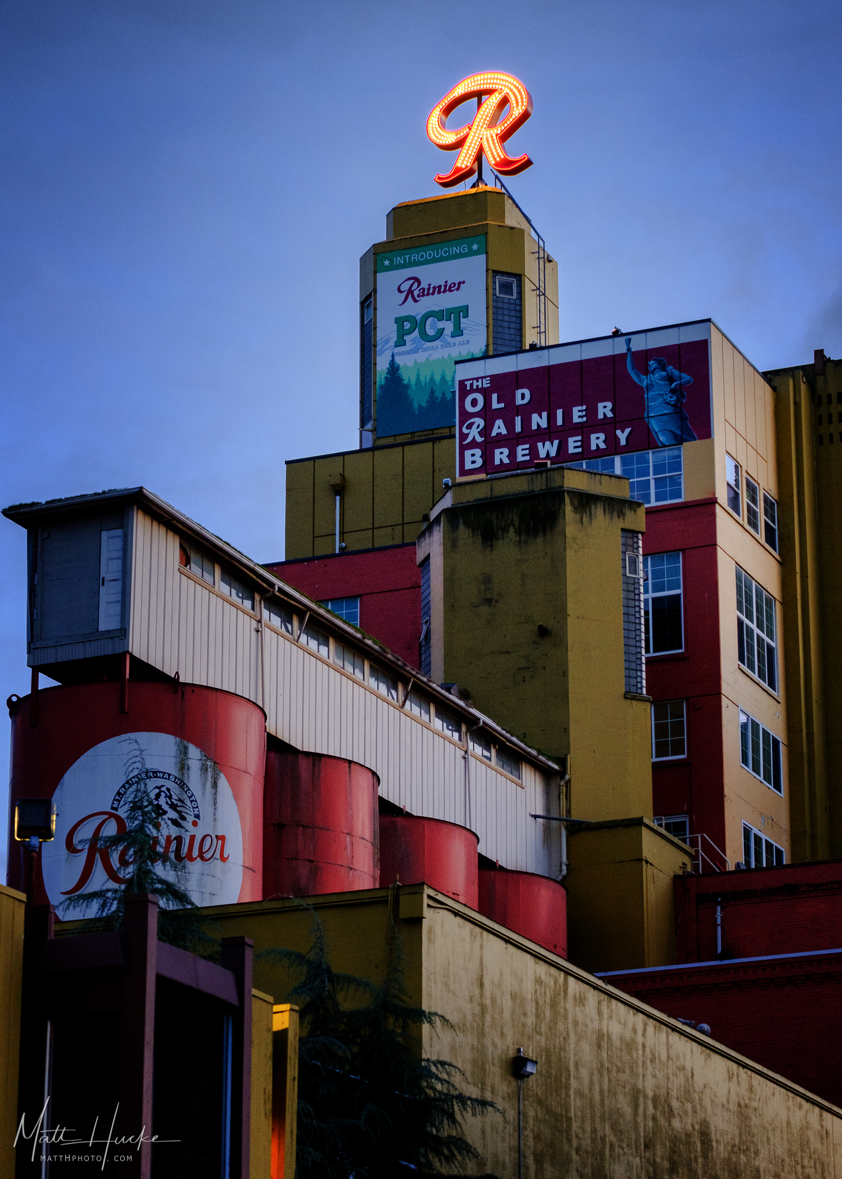 - brewery, industrial, industrial district, industrial district seattle, neon sign, rainier beer, seattle