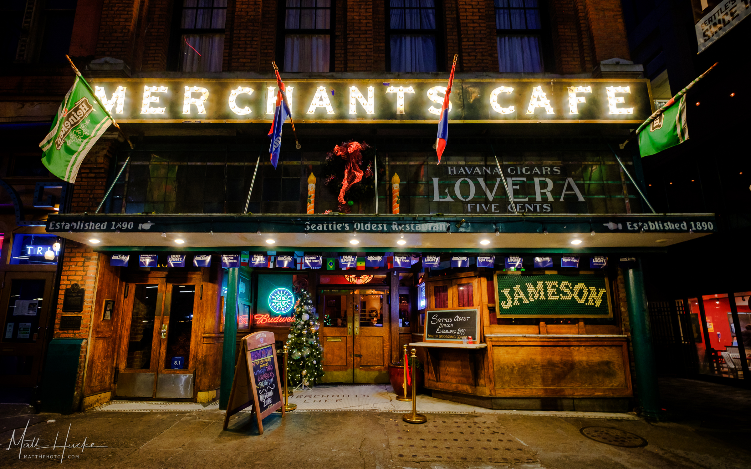 Merchants Cafe, Pioneer Square, Seattle's oldest restaurant. Established 1890.