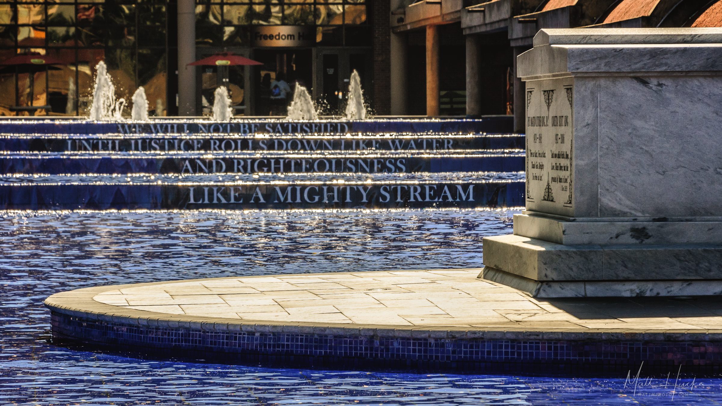 "We will not be satisfied until "justice rolls down like water, and righteousness like a mighty stream." - tomb of Martin Luther King Jr