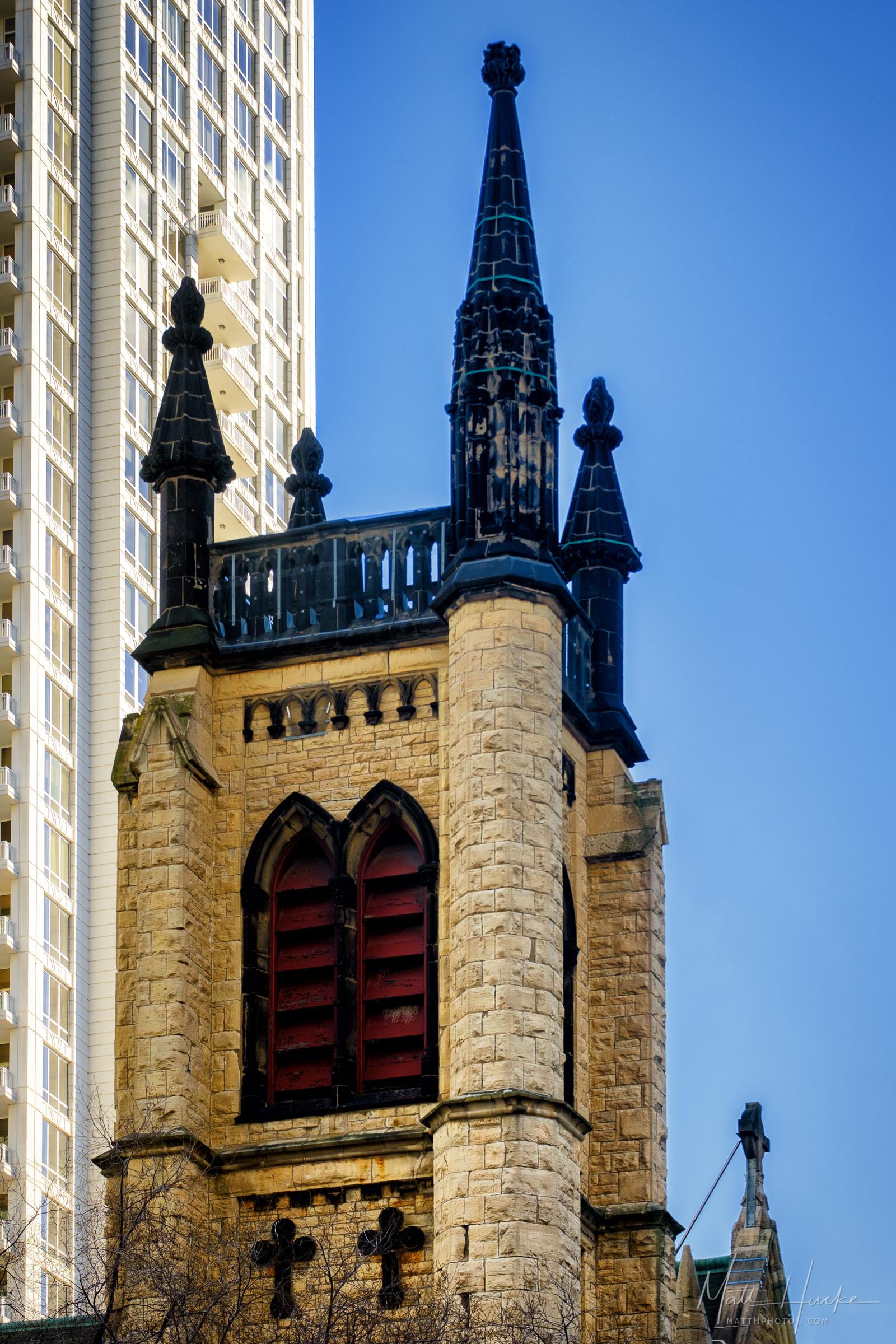 Original bell tower of St. James Episcopal Cathedral, Chicago, the only part of the church to survive the Great Chicago Fire of 1871.