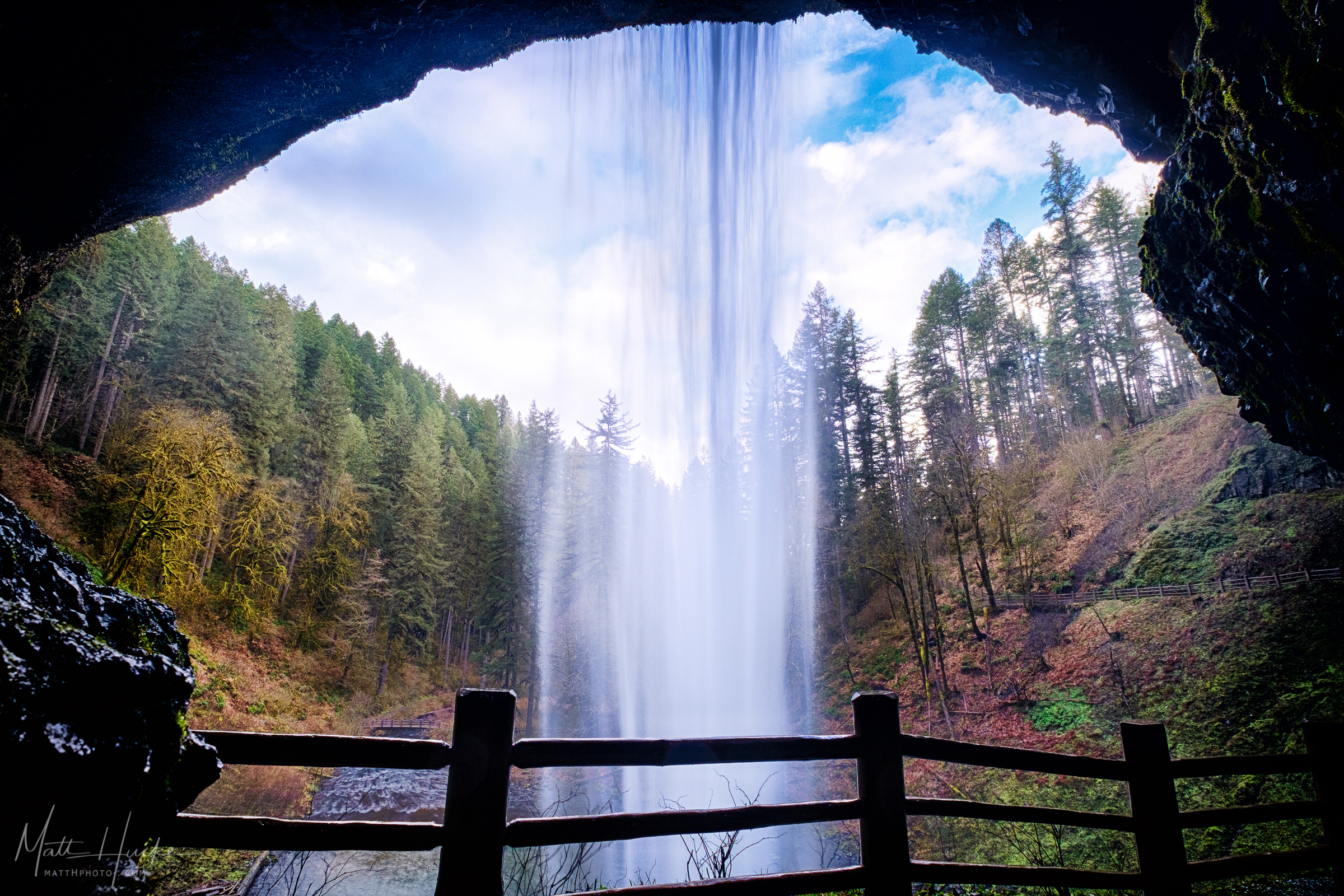 - behind waterfall, cave, oregon, silver falls, silver falls state park, south falls, waterfall