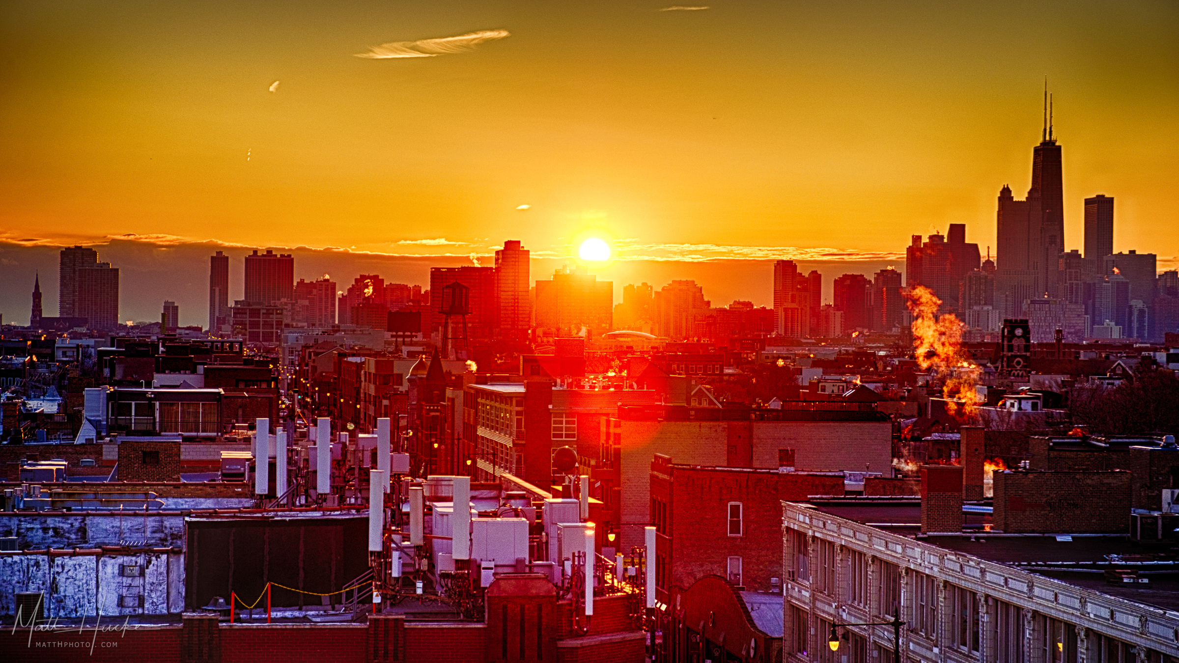 - bucktown, chicago, john hancock building, north avenue, rooftops, skyline, sunrise, wicker park
