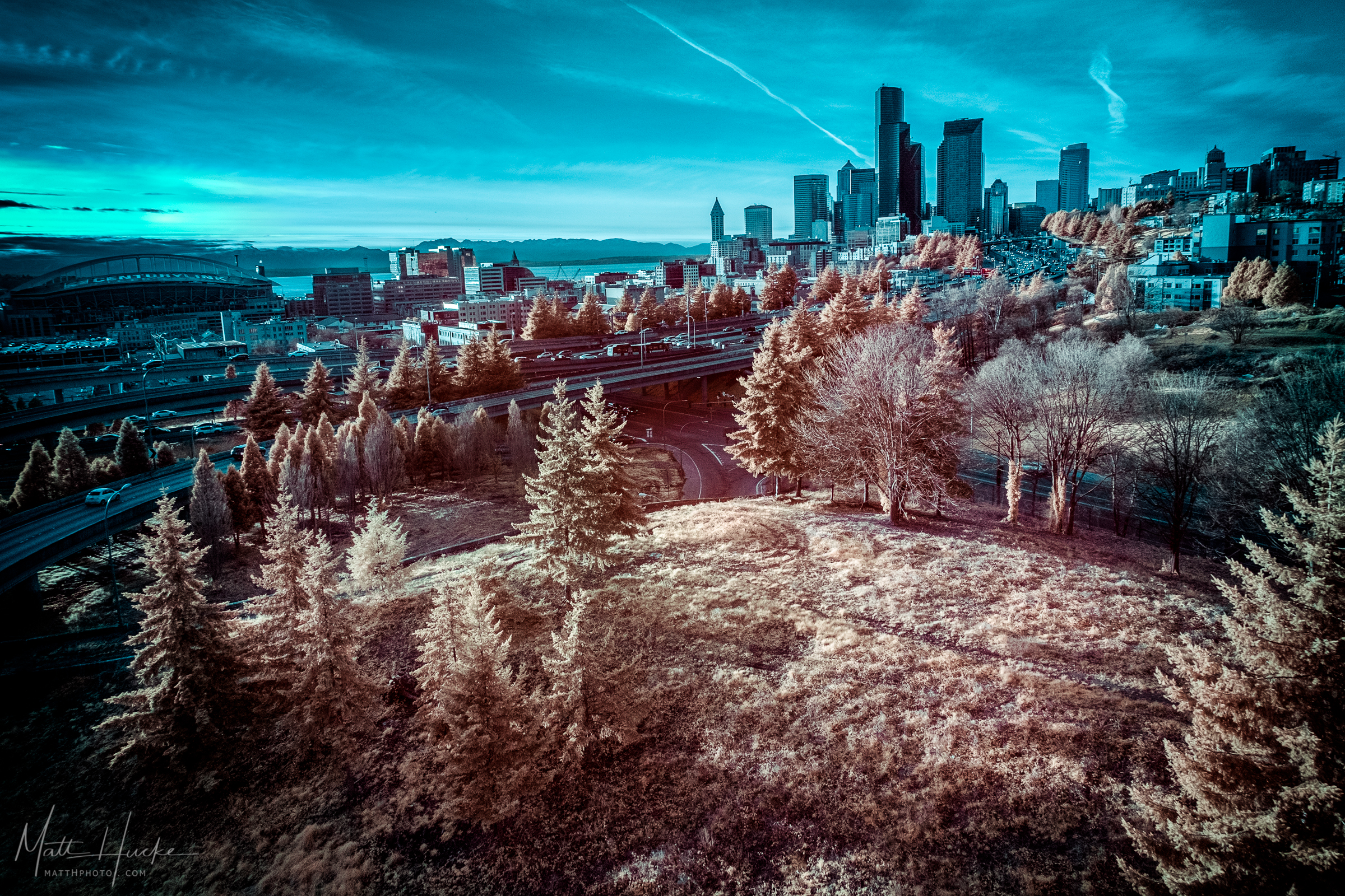 - buildings, channel swapping, city, downtown, infrared, lifepixel, rizal bridge, seattle, super color IR