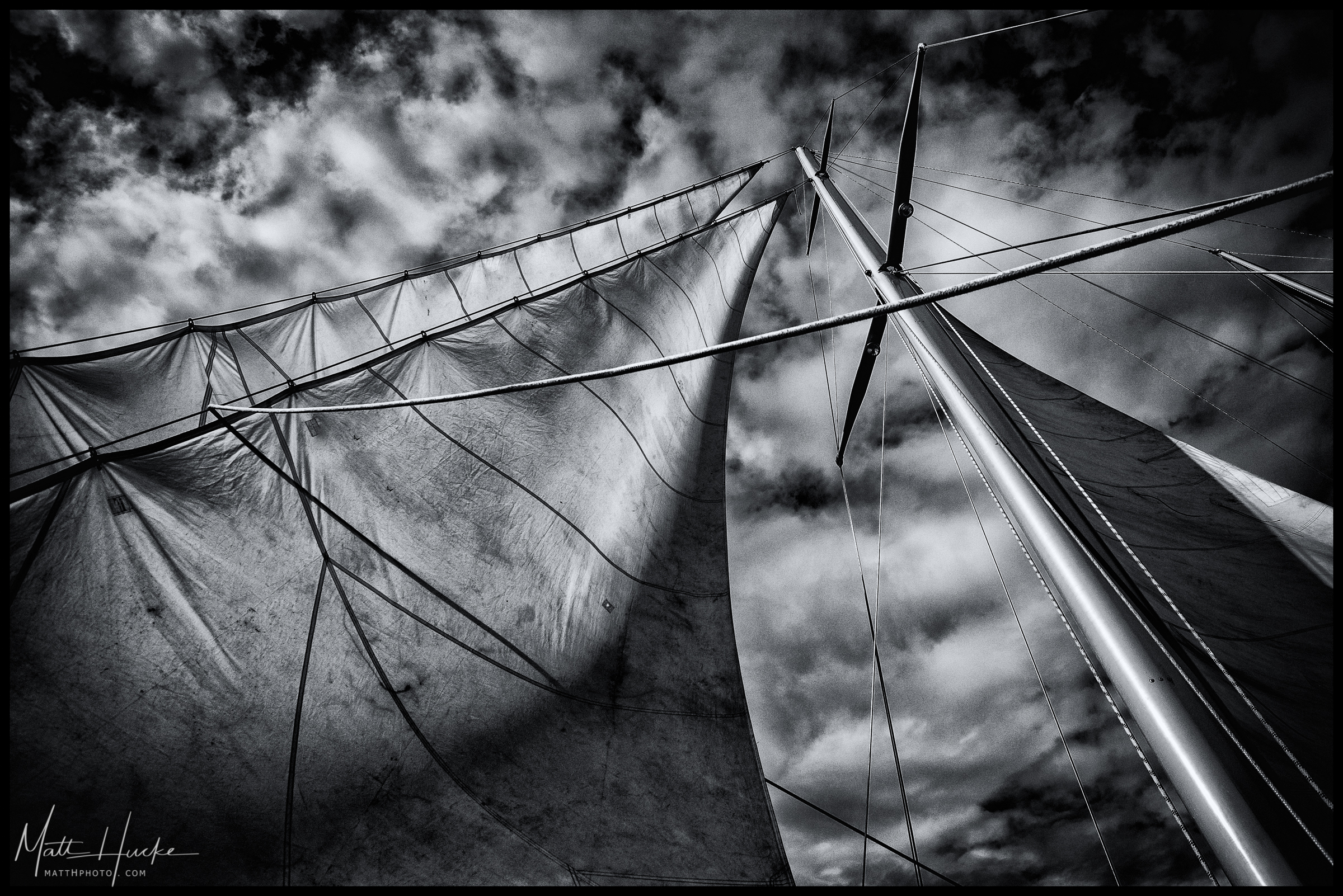 Two headsails on a 50-foot ketch, Armadillo, in the San Juan islands.
