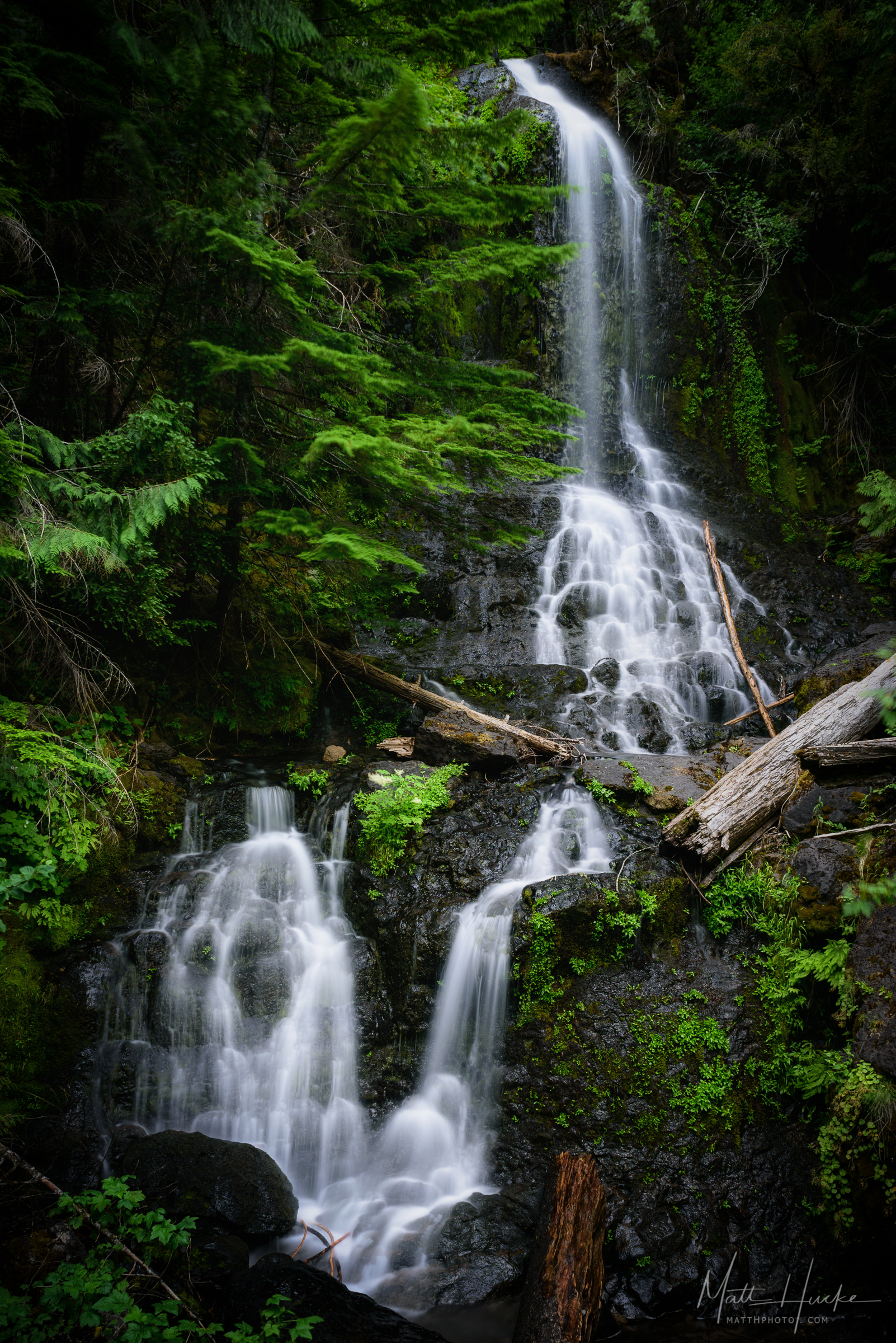 A small roadside waterfall near the southeast entrance of Mount Rainier National Park.