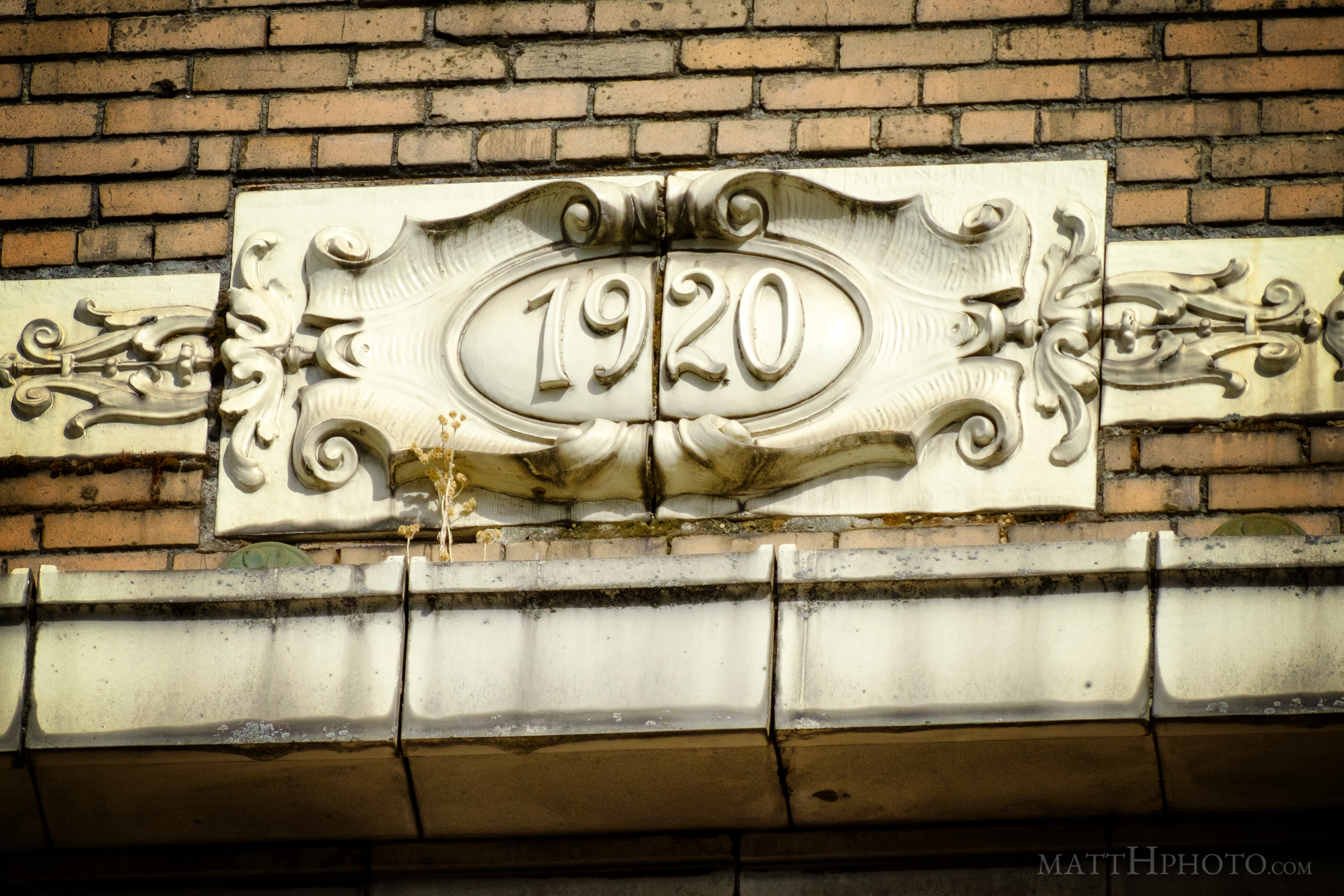 Medallion under roof line of building in International District, Seattle