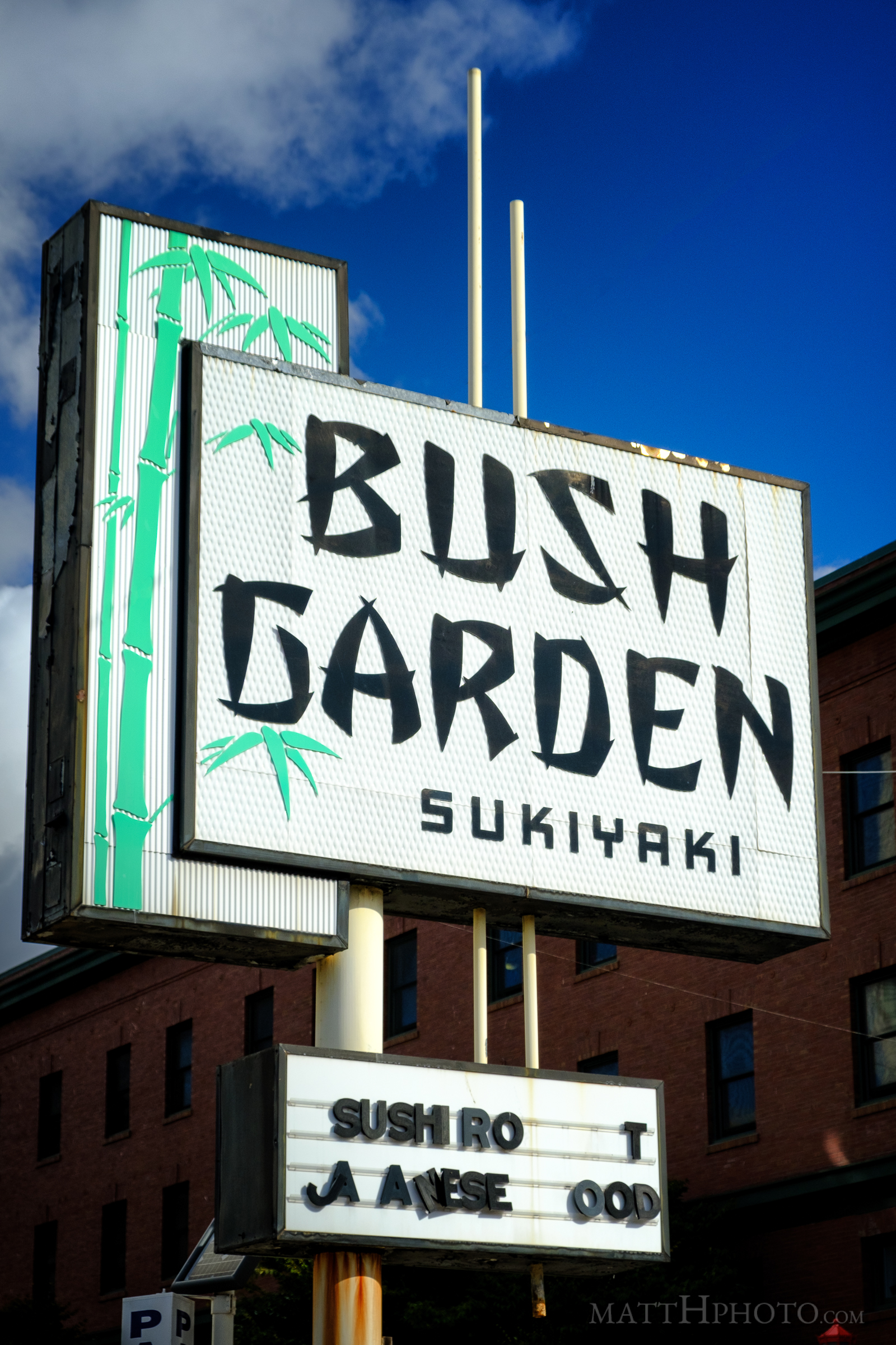 - bush garden, japanese, japanese restaurant, restaurant sign, seattle, sign, vintage sign