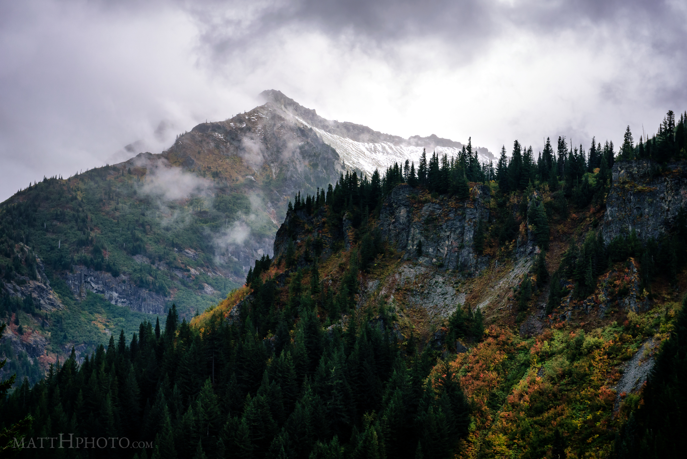 Stevens Peak, viewed from opposite side of Stevens Canyon, Mount Rainier National Park. A ridge connected to Unicorn Peak is in the foreground.