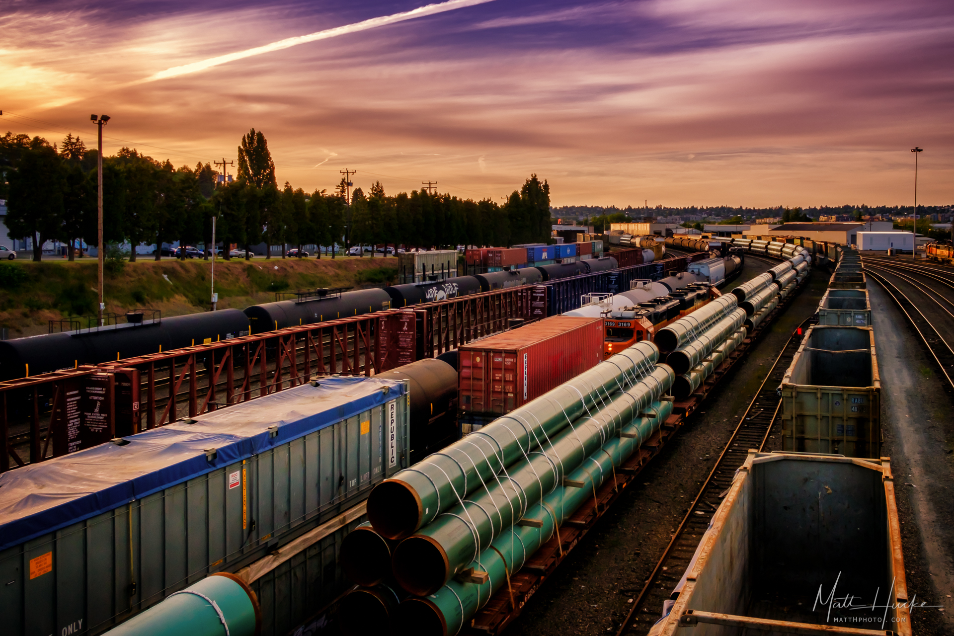 - seattle, sunset, train yard, trains