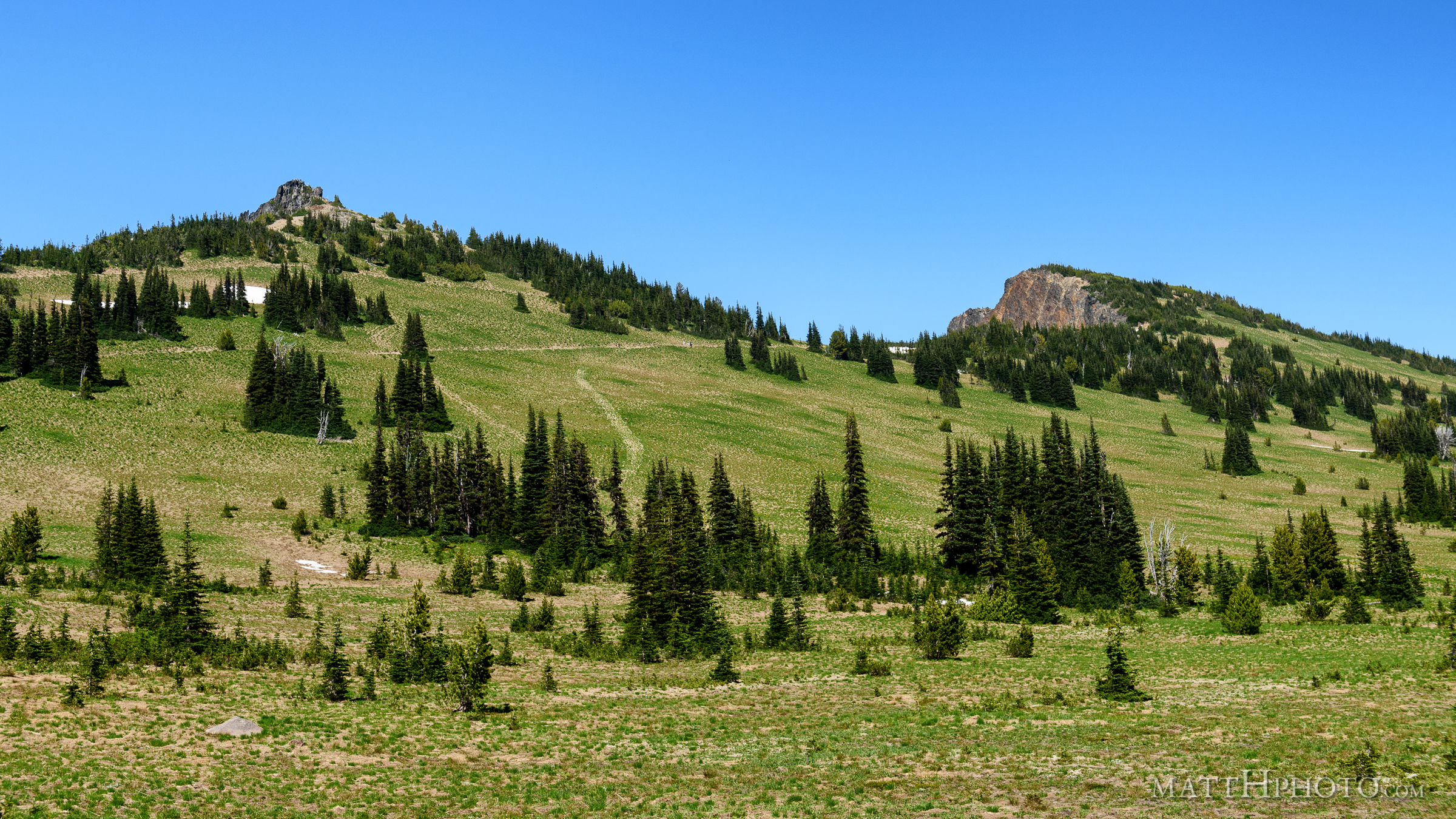 Viewed from trails near Sunrise visitor center. Unnamed 6951-foot peak, and 7017-foot Antler peak.