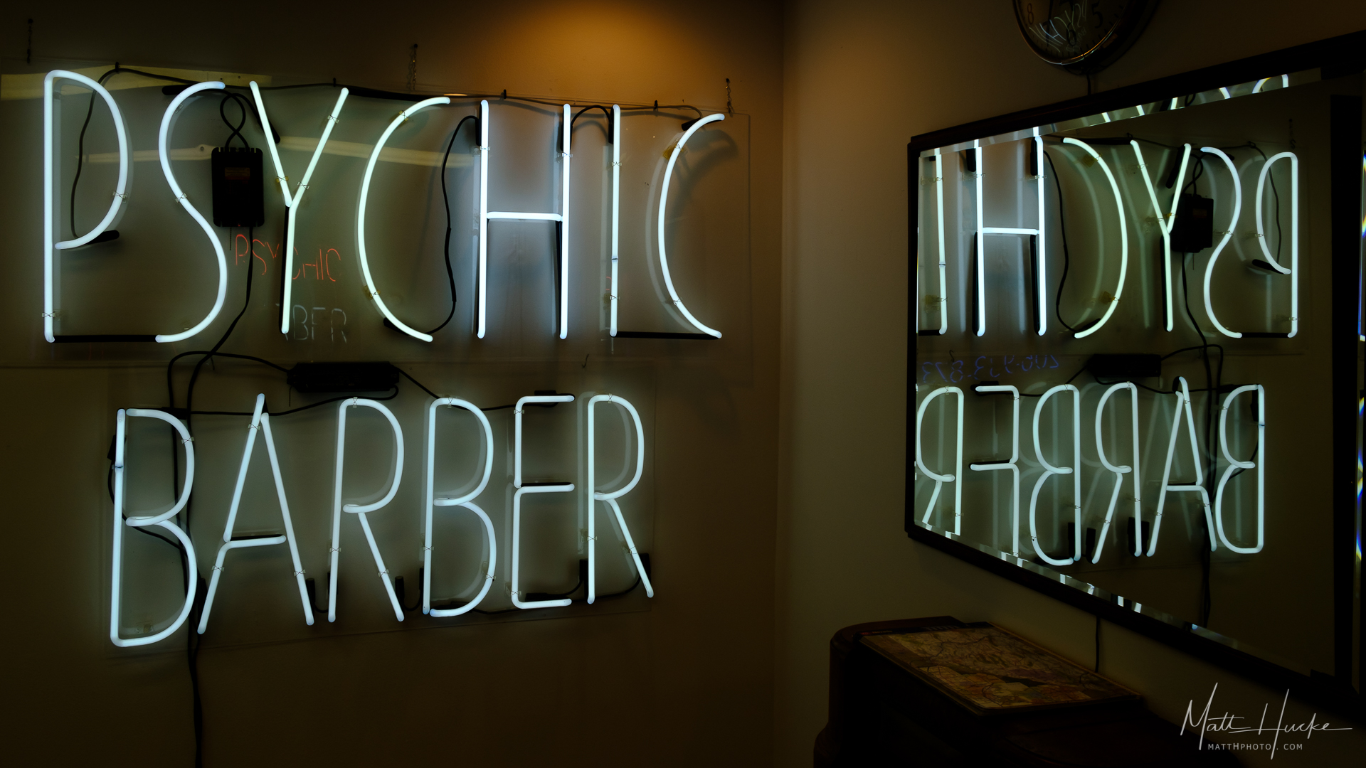 - barber, joke, neon, neon sign, psychic, seattle, seattle neon, west seattle