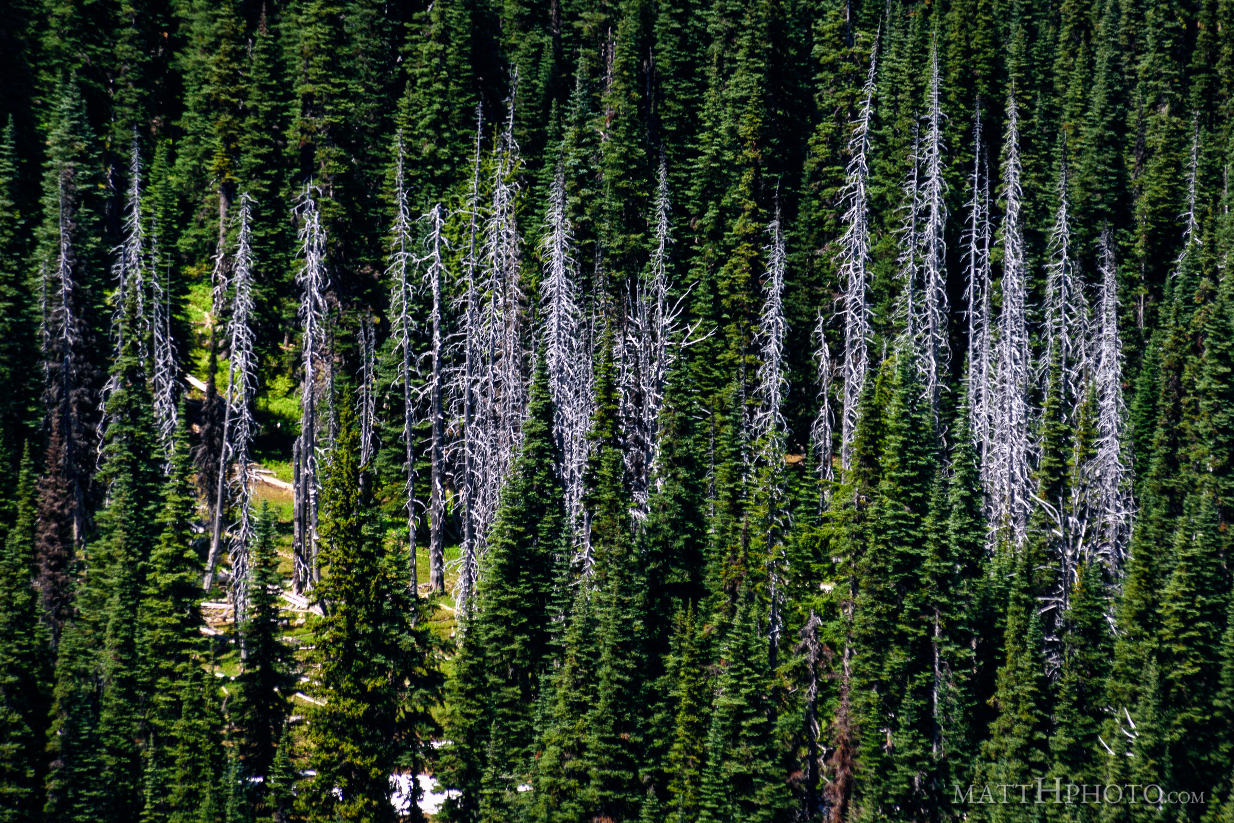 Standing dead trees, looking north from Sunrise Point (6130ft), Mount Rainier National Park.