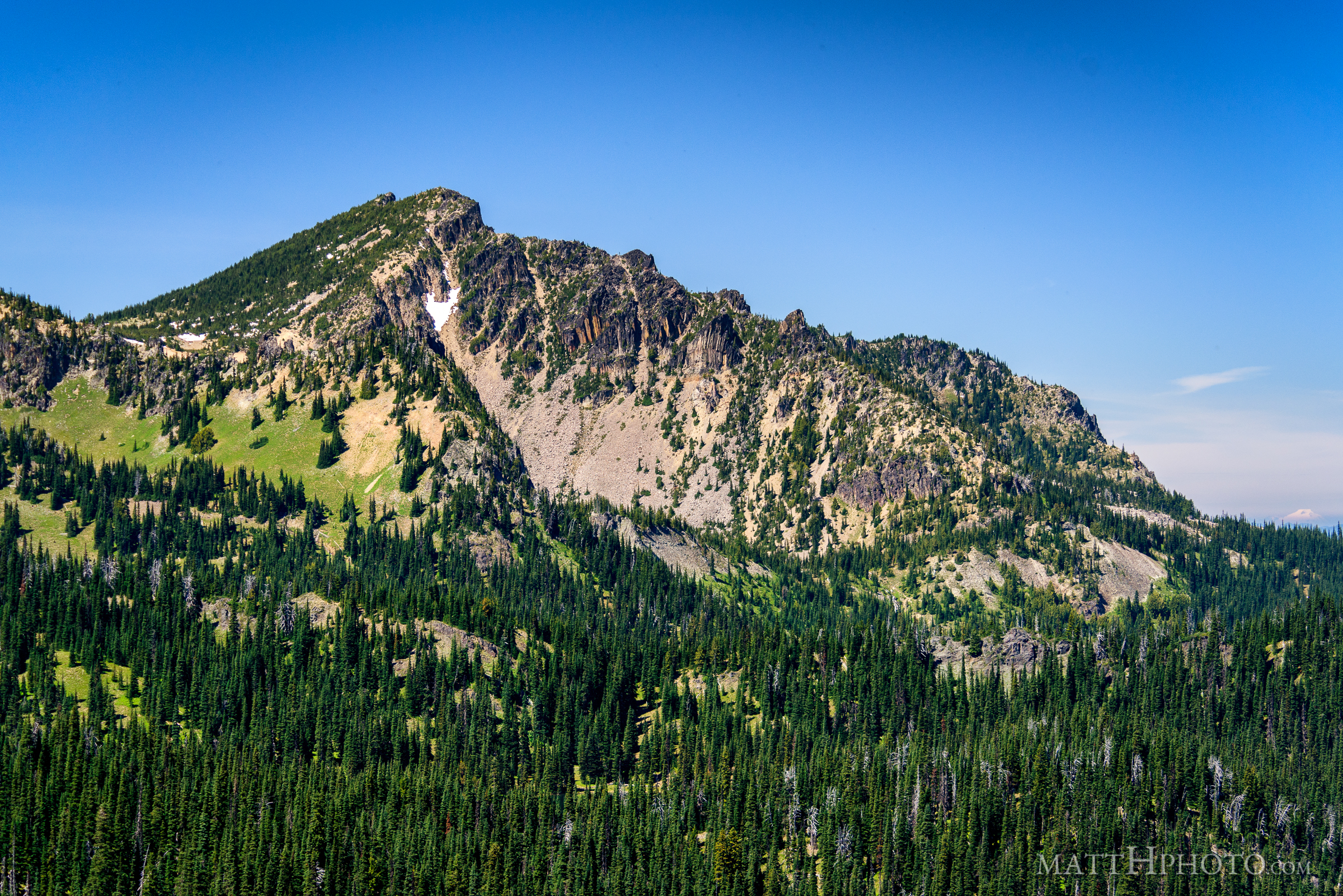 Palisades Peak (7000ft), named for it columnar basalt formations resembling a defensive wall. Looking northwest from Sunrise Point (6130ft), Mount Rainier National Park.