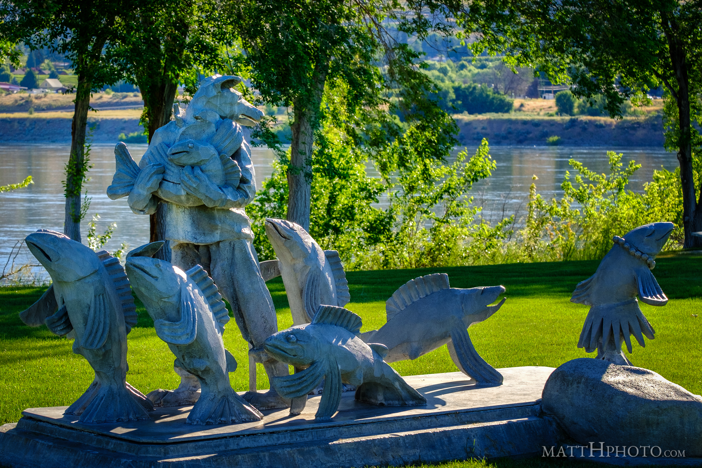 - central washington, channeled_scablands, columbia river, coyote, salmon, sculpture, walla walla point park, washington