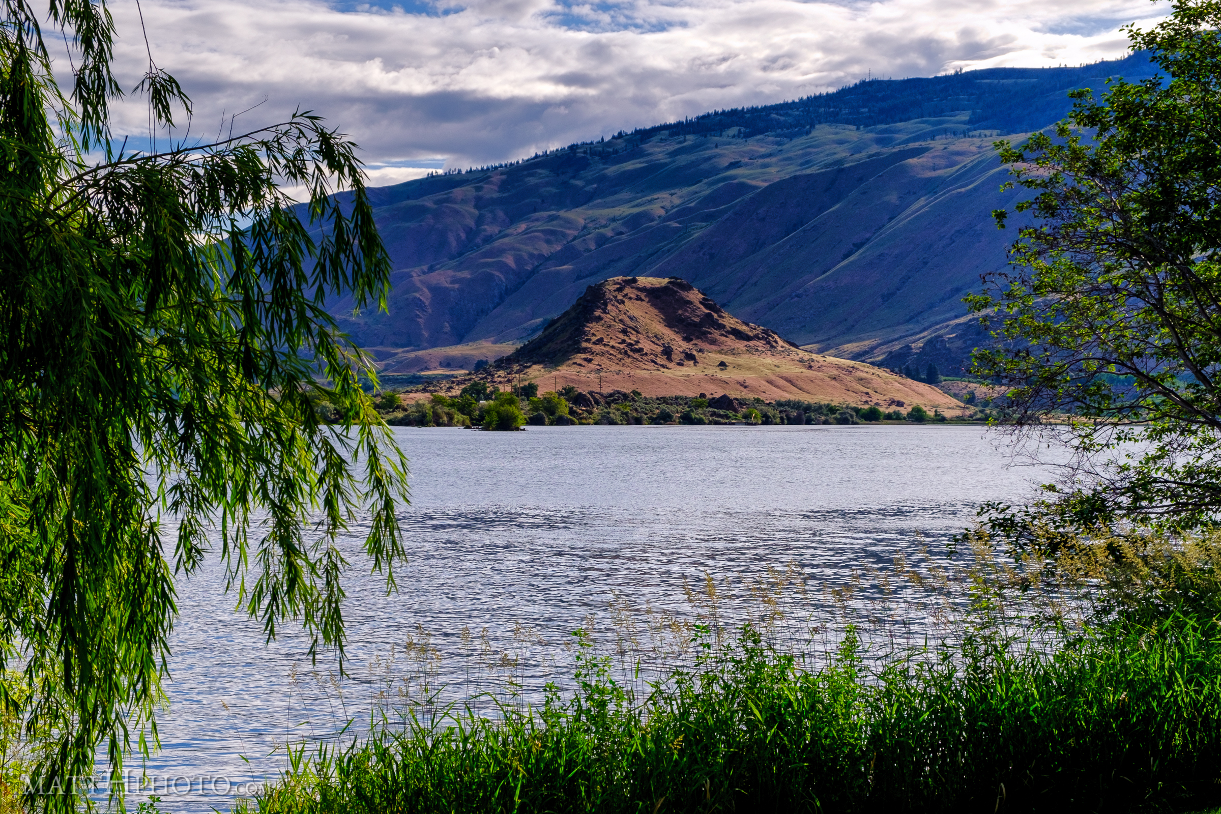 Turtle Rock Island near Lincoln Rock State Park. Originally a simple rocky hill on the south bank of the Columbia River, US Highway 2 ran through it. The construction of the Rocky Reach Dam in 1960 caused the formation of Lake Entiat around this hill, cutting it off from the rest of the south bank, submerging the old US Highway 2, and creating Turtle Rock Island. It is now a protected wildlife area accessible only by boat.
