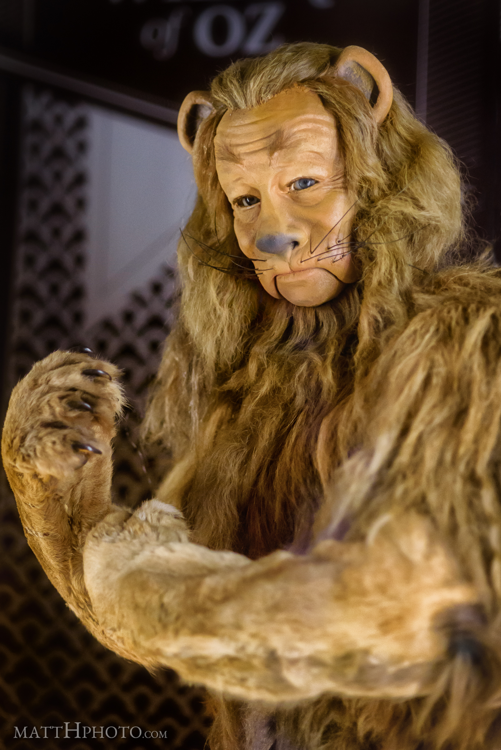 Original "Cowardly Lion" costume at the Museum of Pop Culture, Seattle, supplemented with a mask modeled on the features of Bert Lahr.