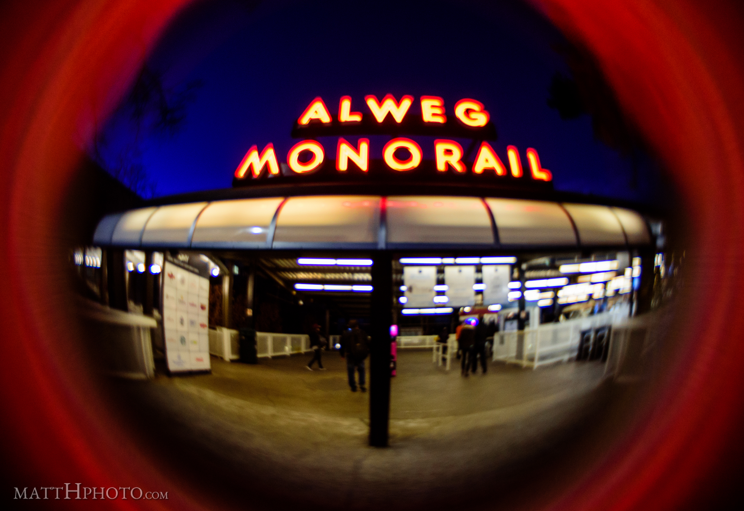 - alweg monorail, center, fisheye, lensbaby, lensbaby fisheye, monorail, seattle, seattle center monorail