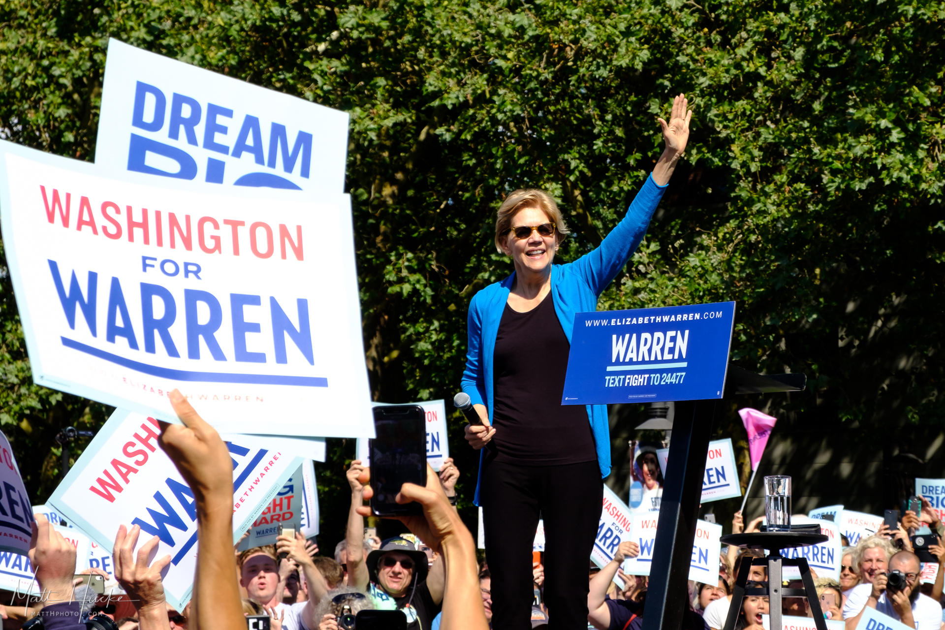 - candidate, democratic party, political rally, political signs, politics, potus, presidential, seattle, seattle center, senator, senator elizabeth warren