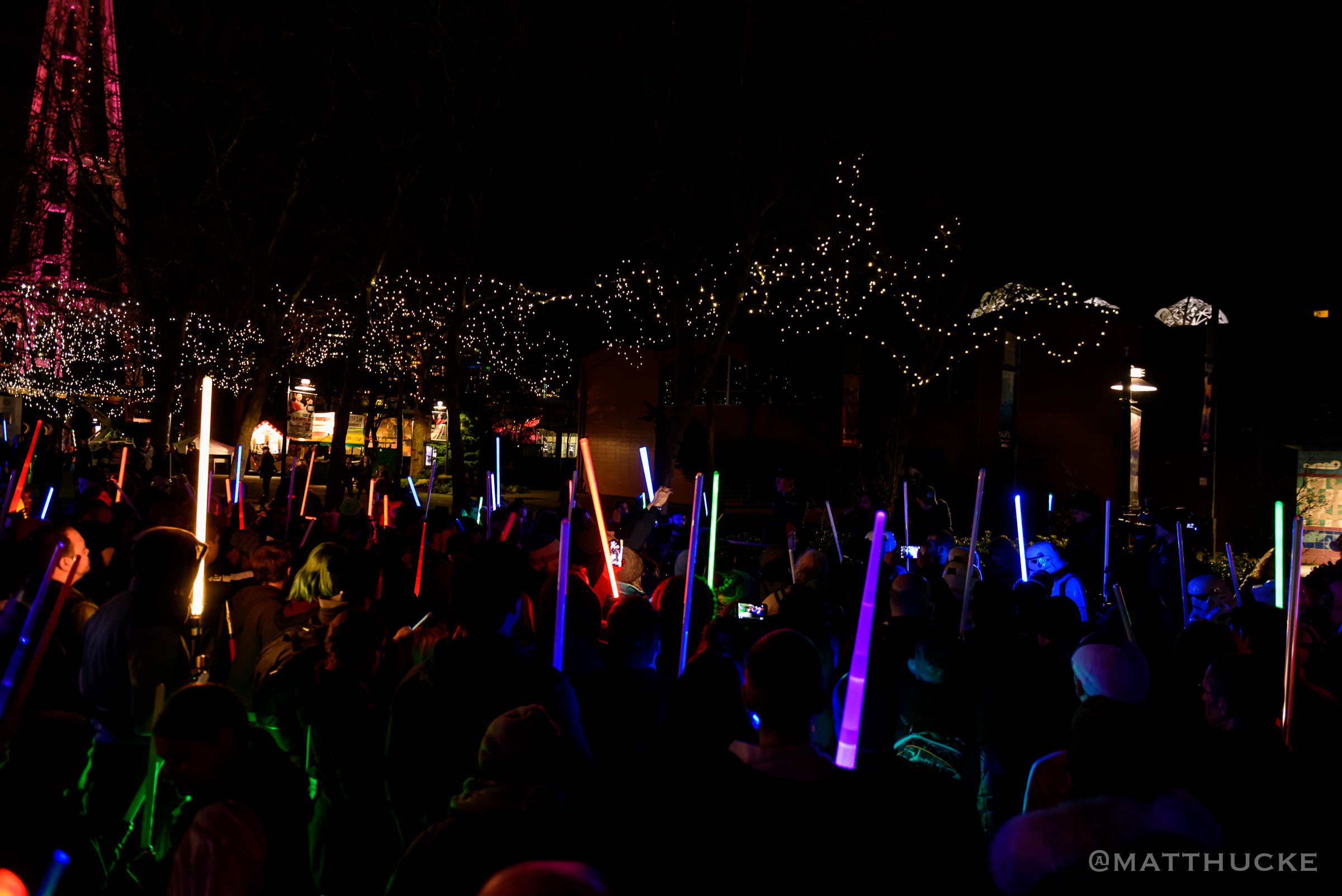 - 501st legion, carrie fisher, light saber, light sabre, princess leia, seattle center, space needle, star wars, vader's fist