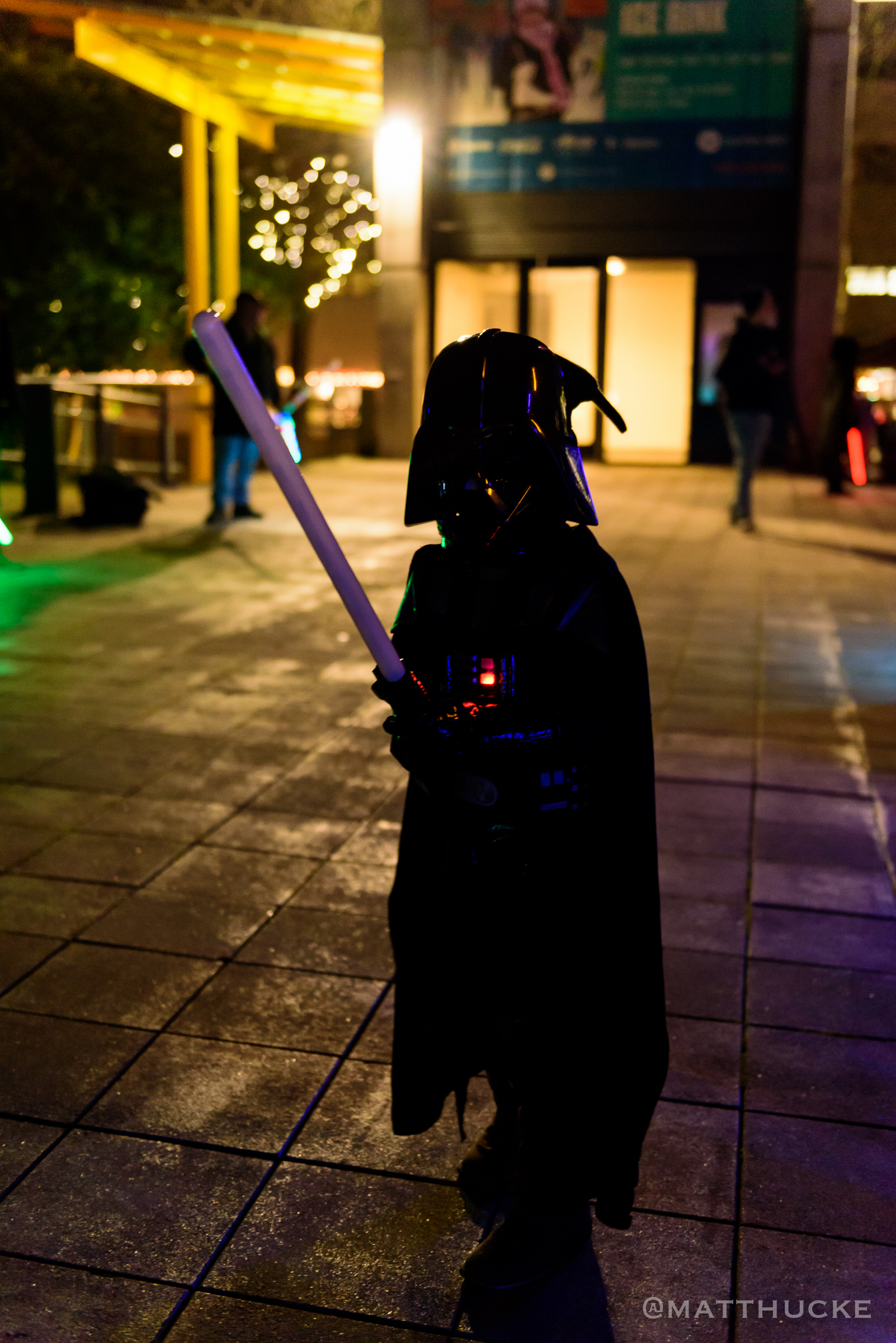 - 501st legion, carrie fisher, light saber, light sabre, princess leia, seattle center, space needle, star wars, vader's fist