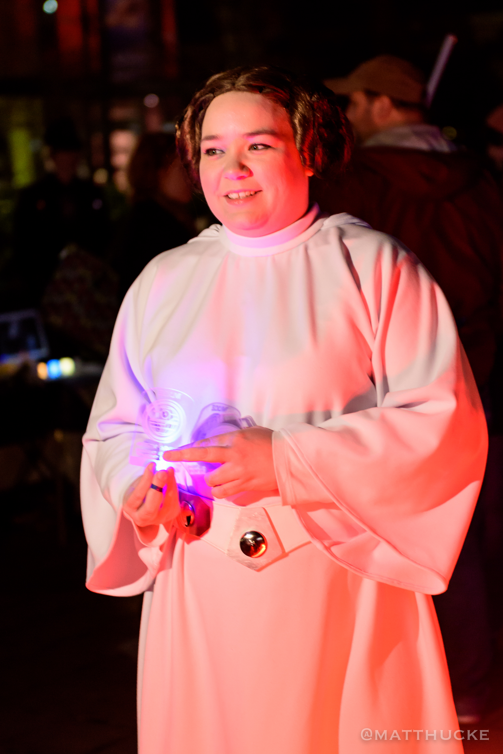 - 501st legion, carrie fisher, light saber, light sabre, princess leia, seattle center, space needle, star wars, vader's fist