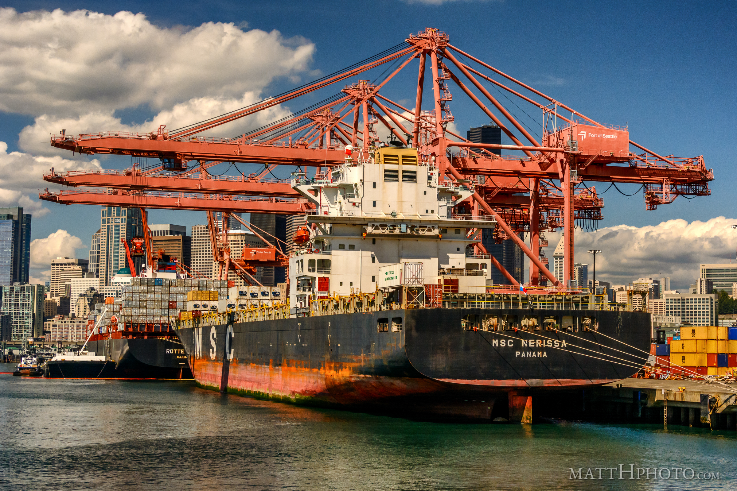 - cargo cranes, container ship, gantry crane, port of seattle, puget sound, seattle, washington